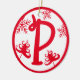 Temed natalino, letra de monograma P em vermelho sobre fundo branco. Vermelho e branco podem ser modificados clicando no link 'personalizar mais'. Letra bonita P com flocos de neve e pinheiro.