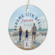 Monogrammed personalizou Panama City Beach, o ornamento de souvenir da Flórida com data de ano personalizável e uma cena ensolarada de costa mostrando uma família feliz desfrutando do belo surf, sol e areia da Flórida. Como o texto deste ornamento é totalmente personalizável, você pode mudar o nome para qualquer praia de sua escolha, como "Daytona Beach", etc. Você pode mudar facilmente a ortografia de texto, ano; estilo, cor e tamanho da fonte com o botão de personalização Zazzle.