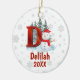Letra inicial personalizada D Enfeites de natal de boneco de neve. Nome e ano personalizáveis.