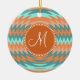 Ornamento De Cerâmica Monograma Tribal Coral Aqua Torna Ondas