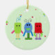 Um fundo verde macio com bolinhas brancas acentua esta design divertida de monstros bobos em cores brilhantes e divertidas.
