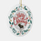 Ornamento De Cerâmica Moose de Natal Russo e Feliz com Holly e Pine