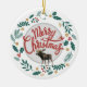 Um ornamento de Natal circular com alce e uma bela fonte escrita manual. Um ornamento de excelente para uma cabana, casa ou B&B. Vermelho e verde. Dê como presente de você e sua família. Personalize por trás. Se preferir, apague as informações da família no verso e use como ornamento pessoal.