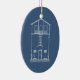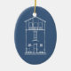 Modelo Home novo que tira primeiro o Natal novo azul e branco ornamento cerâmico oval frente e verso personalizado da casa. Mantenha a tiragem da casa na parte dianteira ou transfira arquivos pela rede sua própria imagem. Todo o texto sobre para trás pode ser personalizado. Esta imagem é de minha tinta original no desenho da mão de mylar de uma casa de campo rústica pequena com encantamento de detalhes arquitectónicos e a pedra pequena benches cada lado da porta. Eu alterei a imagem digital para olhar como um desenho do modelo da antiguidade ou do vintage (cedo aos mediados do século XIX).