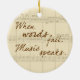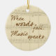 Este design bonito mostra o sentimento, "Quando as palavras falham, a música fala", em uma folha de música amêndoa parece um fundo.