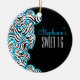 Ornamento De Cerâmica Na moda Blue Sweet 16 Zebra Design