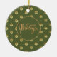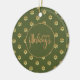 Festivo com estilo. Este adorável ornamento cerâmico apresenta um padrão floral de margarida dourada contra um elegante e rico fundo verde. A parte de trás do ornamento inclui a mesma cor verde elegante junto com o texto personalizado. Personalize para que você seja o dono. Se você gosta disso, pode ver o mesmo design em um cartão de Natal aqui: https://www.zazzle.com/collections/holiday_christmas_ny_cards_postcards-119275702780185553