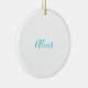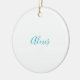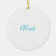 Ornamento De Cerâmica Name Calligraphy Script Plain Simple White Blue