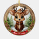 Ornamento De Cerâmica Name Whimsical Reindeer Rustic Holiday Tree 🦌🎄