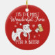É o momento o mais maravilhoso para uma cerveja! Papai Noel com seu saco do presente do Natal que guardara uma cerveja. Design do divertimento para amantes da cerveja e bebedores de cerveja para a época natalícia. Divertimento e design engraçado da ilustração do Natal. Dizer do humor do Natal/citações. O fundo vermelho pode ser mudado do vermelho a todas as outras cores. A paródia de "ela é a época a mais maravilhosa do ano".