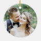 Este ornamento de feriado para casais e recém-casados apresenta uma coroa de boho verde moderna com seus nomes no centro para personalizar com o ano. A parte de trás da foto tem uma foto para você mudar para a sua. Feliz Feriados!