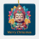 Uma cena tranquila que retrata uma figura serena no meio de um pano de fundo festivo de Natal. A figura, com sua expressão pacífica e postura meditativa, irradia uma aura de calma e introspecção, enquanto as decorações e ornamentos de Natal adicionam um toque de calor e alegria. Esta trabalho de arte representa a mensagem universal de paz, amor e harmonia que ambas as tradições contemplativas e as celebrações sazonais promovem.