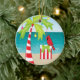 Ornamento De Cerâmica Natal cardinal vermelho da palmeira tropical da