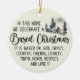 Ornament cerâmico da Família Cristã Baseada no Natal O texto diz: "Nesta casa celebramos um Natal baseado. É baseado em Deus, Família, País, Amigos, lealdade, verdade, honra, respeito e amor"
