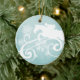 Este cavalo de Natal muito bonito e na moda, chamado design, apresenta um cavalo saltante e um cavaleiro com flocos de neve brancos e floreados contra um fundo azul de cor. Um excelente de inverno temia imagem equestre para o amante dos cavalos de qualquer idade!