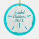 Ornamento De Cerâmica Natal de Praia Personalizada da Turquesa de Dólar