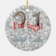 Ornamento De Cerâmica Natal de prata de Bokeh do aniversário de 21 anos