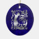 Uma imagem de Natal ornamentado, decorativa e muito elegante, com uma cereja/anjo prateada a soprar um trompete contra um fundo azul, para colocar alguma classe real no seu espetáculo de Natal e de Natal este ano!