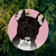 Enfeite de Natal de bulldog francês inspirado em pop art excêntrico com um cão bulldog francês preto listrado em um fundo rosa pastel que pode ser alterado para qualquer cor, adicione o nome do seu animal de estimação.