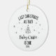 Celebre seu primeiro Natal como novos pais com este lindo ornamento! O ornamento apresenta um design de anúncio da mãe grávida e é perfeito para comemorar este tempo especial em sua vida. É um presente excelente para você ou para um ente querido que está esperando. Ultrassom Personalizado. Um presente especial para o seu marido neste Natal.
