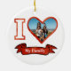 Adicione sua foto de família, animal de estimação, marido, esposa, filho, filha a este design de "Eu amo o coração da minha família". Faz um excelente de guardar e decorar a árvore de Natal.