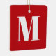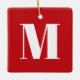 Monograma, carta inicial personalizada, vermelha e branca, moderna e elegante, ornamento cerâmico de Natal