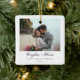 Este Enfeites de natal de noivado mínimo e elegante é a maneira perfeita de comemorar seu primeiro Natal, assim que um casal de casado se casar. O ornamento apresenta um design simples, preto e branco com seus nomes e a data do seu casamento. Você também pode adicionar sua foto ao ornamento, fazer-a como um presente pessoal e único. Este ornamento faria um presente pensativo e significativo para seu cônjuge, seus pais, ou qualquer outro amado. É também uma forma excelente de adicionar um pouco de alegria de férias à decoração da sua casa. Personalize seu ornamento com seus nomes e o ano que você comemorou o Natal juntos. Isso o torna um presente único e especial que você vai apreciar por anos. Ornamento personalizado O Nosso Primeiro Natal Juntos hoje e comece a comemorar o seu primeiro Natal juntos!