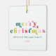 Este cartão de Natal multicolor tem uma fonte de versão retrô de tendência. Personalize-o com a sua mensagem especial de feriado e os nomes dos membros da sua família no verso.