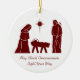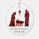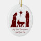 Cena de Natal na Silhueta Vermelha Escura Elegante com Ornamento Cerâmico Inspiracional... Mary, Joseph, Baby Jesus e a Estrela de Belém contam a história enquanto a inspiradora mensagem de Natal dá o significado: "Que a Consciência do Cristo Leve Seu Caminho." Você pode facilmente revisar o texto com sua própria mensagem.