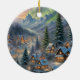 Este Ornamento apresenta uma vila coberta de neve com casas iluminadas nas montanhas, cercada por árvores altas, luzes polares brilhando no céu. Bonito decoração em casa e também um maravilhoso presente de natal! Custom Text.