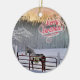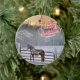 Cavalos pacíficos em uma pastagem de inverno, com um cardeal vermelho brilhante e uma coroa no portão!