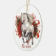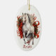 Na frente deste ornamento cerâmico de manutenção é um belo e elegante cavalo branco. O cavalo está rodeado de verde-Natal e fita vermelha brilhante. O nome do seu filho está no fundo. O verso do ornamento tem uma mensagem de Feliz Natal e sua assinatura. Perfeito para qualquer criança que ama cavalos.