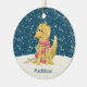 Este design de ornamento de feriado bonitinho e caprichoso apresenta uma ilustração fofa de recuperação de ouros com decoração de Natal e neve, e tem espaço para você adicionar o nome de seu cachorro em uma fonte minimalista. Perfeito para o primeiro Natal de qualquer cão!