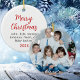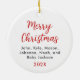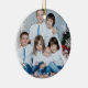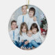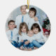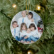 Enfeites de natal elegante personalizado com flocos de neve, e uma foto de todos os primos. Adicione qualquer texto personalizado que você quiser na frente e atrás. O exemplo mostra uma mensagem vermelha de Feliz Natal ou Feriados Felizes nas costas juntamente com o ano atual e os nomes de cada criança. Todo texto é editável.