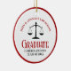 Este moderno Enfeites de natal de graduação de direito vermelho e preto apresenta tipografia clássica para uma classe de formando de 2025. Personalize com o seu ano de graduação sob a escala de justiça para um advogado personalizado ou presente de advogado excelente.