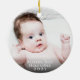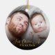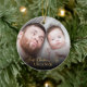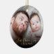 Personalize este elegante Enfeites de natal fotográfico de 2 lados com as palavras "Primeiro Natal Como" em uma caligrafia de script manuscrito em ouro falso, com seu próprio nome de tio, seu nome de tia, nomes de casados, ou o que você escolher, e suas próprias fotos e o ano. Um presente maravilhoso para o novo tio, tia, recém-casados, casal ou casal casado.