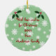 Arte original e engraçada de labrador retriever pintada por Naomi Ochiai de Japão. Design bonito de Labrador do chocolate para o Natal! Você pode personalizar o texto nos ambos lado. Introduza seu nome de família para personalizar o ornamento. :)
