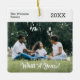 Crie o seu próprio Enfeites de natal personalizado que apresenta a sua fotografia com "What A Year!" em uma fonte de script manuscrito branco na parte inferior. Na parte superior acima da sua imagem está uma banda branca mínima com seu nome e o ano em uma fonte serif preta. Personalize na barra lateral. Direitos autorais da design de pedido ©Claire E. Skinner. Fotografia © Storytree Studios, Stanford, CA