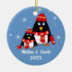 Ornamento De Cerâmica Natal Personalizado para Dois Pequenos Pinguins