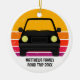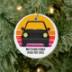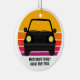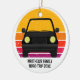 Lindo enfeite de Natal personalizado para viagem para uma lembrancinha de férias de primavera ou verão para sua família ou amigos. Personalize com seu sobrenome ou grupo acima do pôr do sol retrô e silhueta do carro. Lembrancinha perfeita para uma viagem para uma cabana ou através do país. Dirija para o pôr do sol.