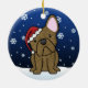 Enfeites de natal rajados bonitos do buldogue francês, tirados em desenhos animados do kawaii! Esta raça adorável do cão está vestindo um chapéu vermelho do papai noel, e os flocos de neve estão caindo toda em torno dele. Absolutamente querido, perfeito para a árvore do Xmas do amante do cão!