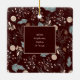 Este simples Enfeites de natal de fotos apresenta "Feliz Natal" em um elegante roteiro moderno e texto personalizado para seu nome de família. A parte de trás oferece um padrão verde boho inverno que aparece em bronzeados e chaleiras em fundo escuro e escuro e oferece texto extra para os primeiros nomes de seus familiares.