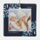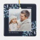 Este feriado comemora um ano especial com este elegante Enfeites de natal personalizado. Graciosos manchas de azul gelado pintadas de água, com névoa, enquadram sua foto, com seu nome e o ano. Adicione uma segunda foto ao verso.