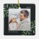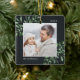 Este feriado comemora um ano especial com este elegante Enfeites de natal personalizado. Graciosos manchas de cor-d-água pintada verde profunda, mistério, enquadram sua foto, com seu nome e o ano. Adicione uma segunda foto ao verso.