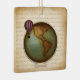 Este ornamento do mapa mundial faux-vintage mostra os dois hemisférios do mundo em lados opostos atravessados por um balão de ar chapéu e dirigível. Este ornamento pode fazer parte de um Natal a vapor ou pode ser usado durante todo o ano como símbolo de viagem e aventura.