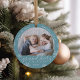 Crie um doce presente para uma vovó ou vovô amada com este belo ornamento de fotos cerâmicas. "Netos fazem a vida grandiosa" aparece ao longo da base com sotaques brancos em flocos de neve. Personalize com o ano abaixo, e os nomes dos netos se curvando por cima. Adicione uma segunda foto ao fundo.