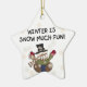 Um boneco de neve com texto no estilo de criança que lê "Inverno é muito divertido de neve!" em um ornamento de boneco de neve que qualquer pessoa que ama homens de neve certamente ama!
