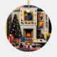 A vibrant, modern Christmas scene blending Memphis Style, New Wave 1980s shapes, Mondrian-inspired color blocking, and Roy Lichtenstein-style pop-art textures. This bold holiday scene features a decorated tree, glowing fireplace, and graphic patterns that make your greeting feel energetic, artistic, and unforgettable. Perfect for design lovers who appreciate a little flair with their festive cheer.