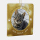 Crie um adorável ornamento memorial de manutenção para um gato adorado intitulado IN LOVING MEMORY (MEMÓRIA DE AMOR) e incluindo sua foto, nome e anos. Os estilos de ornamento de dois lados incluem a opção de adicionar uma foto ao lado traseiro. (DICA DA FOTO: para obter resultados mais rápidos/melhores, escolha uma foto com o assunto no meio e/ou pré-plante em forma quadrada ANTES de fazer o upload e ela preencherá o espaço de fotos perfeitamente.)