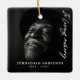 Honre a memória de um ente querido com este adorável e personalizado ornamento de fotos "In Loving Memory". A frente apresenta um belo retrato preto e branco junto com as palavras "In Loving Memory" em um roteiro delicado ao lado, acompanhado pelo nome e datas de vida em uma fonte serif clássica. O verso mostra uma segunda foto pungente, capturando a essência de seu espírito. Este eterno e sofisticado é perfeito para lembrar alguém especial durante o Natal. Pode ser um bem pensado para si mesmo ou um presente sincero para alguém em luto, oferecendo uma maneira significativa de manter vivas memórias queridas.